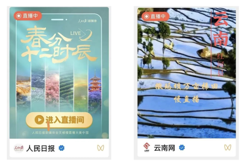 3月20日為農(nóng)歷二十四節(jié)氣的春分,在中國兵器工業(yè)集團(tuán)有限公司的助力下,人民日報、云南網(wǎng)等主流媒體再次聚焦紅河縣撒瑪壩萬畝梯田,人民日報新媒體平臺策劃推出“春分十二時辰”直播活動,通過鏡頭展示祖國各地春分時節(jié)壯美的自然風(fēng)光。其中,人民日報視頻號和云南網(wǎng)視頻號在中午時段的直播中,紅河縣撒瑪壩萬畝梯田出現(xiàn)在觀眾的視野里,贏得了數(shù)十萬觀眾的點(diǎn)贊,產(chǎn)生了良好的社會效應(yīng)。