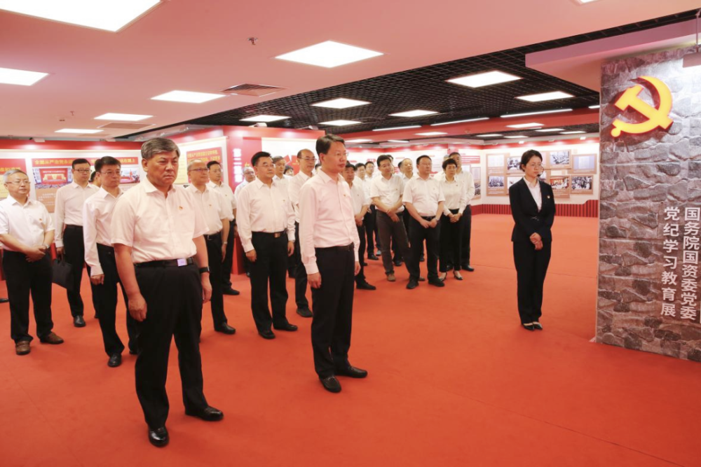 黨組同志認真聆聽講解,集體參觀了“政治鑄魂——習近平總書記重要論述”“紀法樹威——黨規(guī)黨紀相關(guān)要求”“傳承增信——黨的優(yōu)良傳統(tǒng)”“嚴管促行——國務(wù)院國資委黨委紀律建設(shè)成效”“警示立戒——反面典型案例”“實干建功——工作展望”6個篇章,通過觀看圖文、視頻等形式多樣的展品展示,進一步學習領(lǐng)會習近平總書記關(guān)于國資央企的重要指示批示精神和黨的紀律建設(shè)的重要論述,學習把握《中國共產(chǎn)黨紀律處分條例》新增、修訂內(nèi)容,全面了解國務(wù)院國資委黨委強化政治引領(lǐng)、加強政治監(jiān)督、深化紀律建設(shè)、抓實巡視工作等方面的做法舉措,集中觀看近年來國資央企發(fā)生的具有代表性的違規(guī)違紀案例,深刻領(lǐng)悟以習近平同志為核心的黨中央堅持黨要管黨、全面從嚴治黨取得的歷史性成就,全面感受國務(wù)院國資委黨委全面從嚴治黨取得的重要成果。